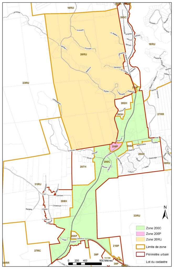 - Ce second projet de règlement numéro 954-25 (AM-001) contient des dispositions qui peuvent faire l’objet d’une demande de la part des personnes intéressées de la zone concernée 206P et des personnes des zones contiguës suivantes : 26RU et 200C afin qu’un règlement qui les contient soit soumis à l’approbation des personnes habiles à voter conformément à la Loi sur les élections et les référendums dans les municipalités.