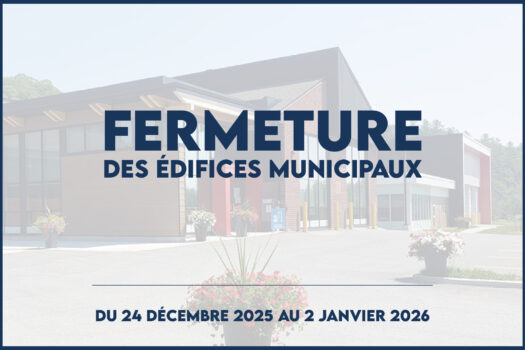 La Municipalité de Val-des-Monts informe sa population que tous les édifices municipaux, incluant les bibliothèques, seront fermés pour la période des Fêtes, soit du 24 décembre 2025 au 2 janvier 2026 inclusivement.