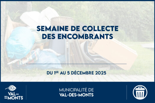 Prenez note que la semaine prochaine, du 1er au 5 décembre 2025, ce sera la collecte des matières encombrantes